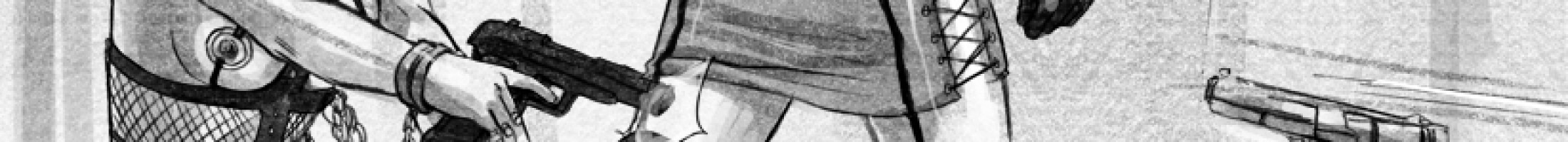Hier haben wir eine Szene aus einem Undercover - Shadowrun, welcher ziemlich in die Hosen ging. Eclipse (rechts) und Headshot (links) wurden bei einem Lauschangriff auf zwei mehr oder minder wichtige Yakuza - Vertreter erwischt. Wie man sehen kann, zahlt sich eine gute Vorbereitung dennoch aus, so haben die Beiden zumindest Waffen (eine gute alte Walther P-059 "Futura" und eine exotische Monofilamentpeitsche) für ihre Verteidigung dabei.