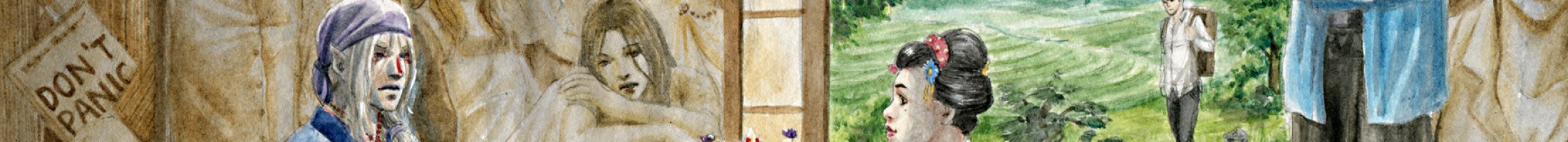 Kusuriuri sollte man erkennen, dafür habe ich festgestellt, dass es verschiene Designs seines Kinomos gibt. Gilt auch für Kayo, Odajimas Gesicht habe ich etwas relistischer gemacht, dieses karrikaturhafte aus Mononoke hätte nicht zum Rest gepasst.
